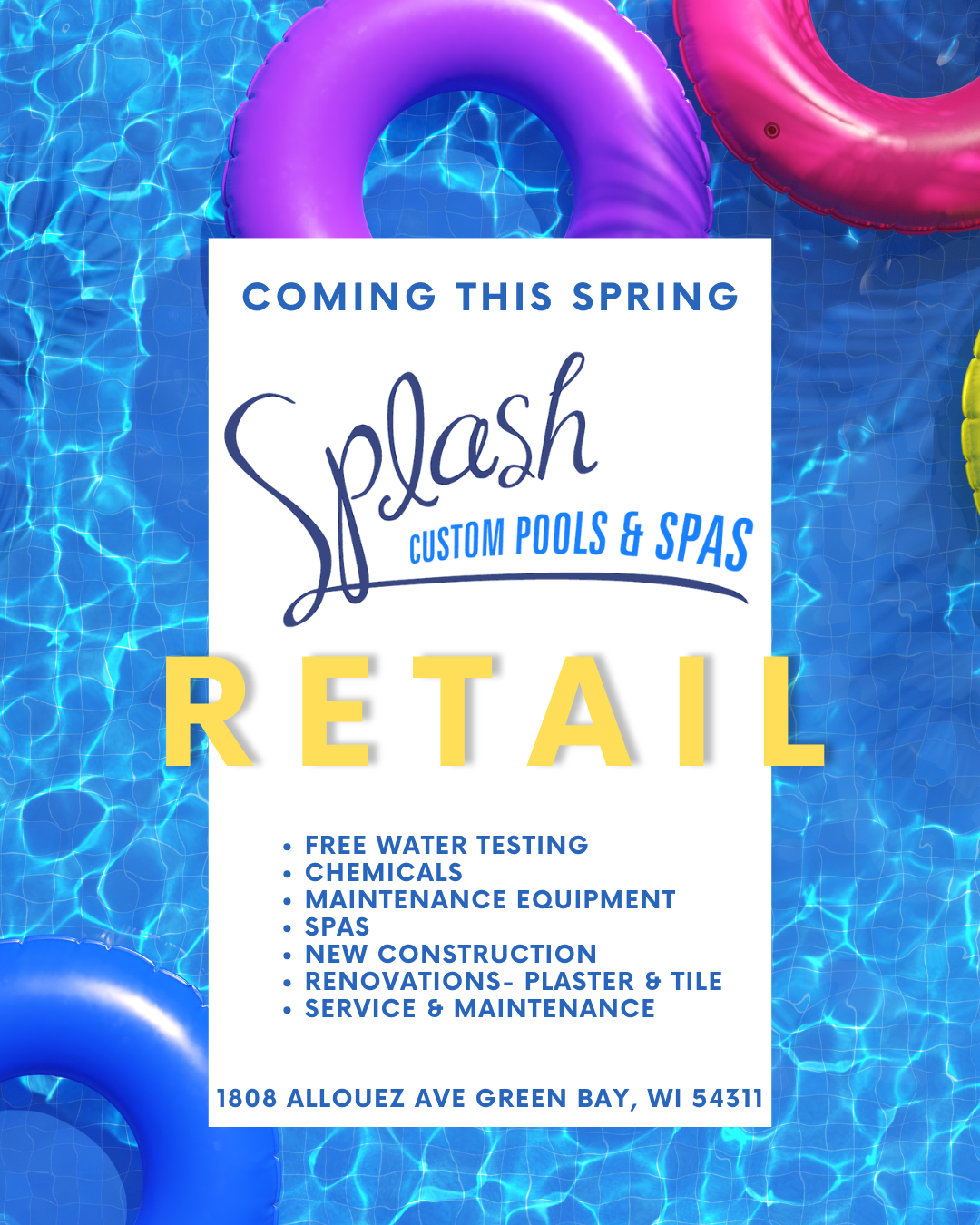 Make your life easier. Splash Custom Pools and Spas will open your pool or spa for the summer and close it in the fall. We handle all of the covers, chemicals, and equipment.